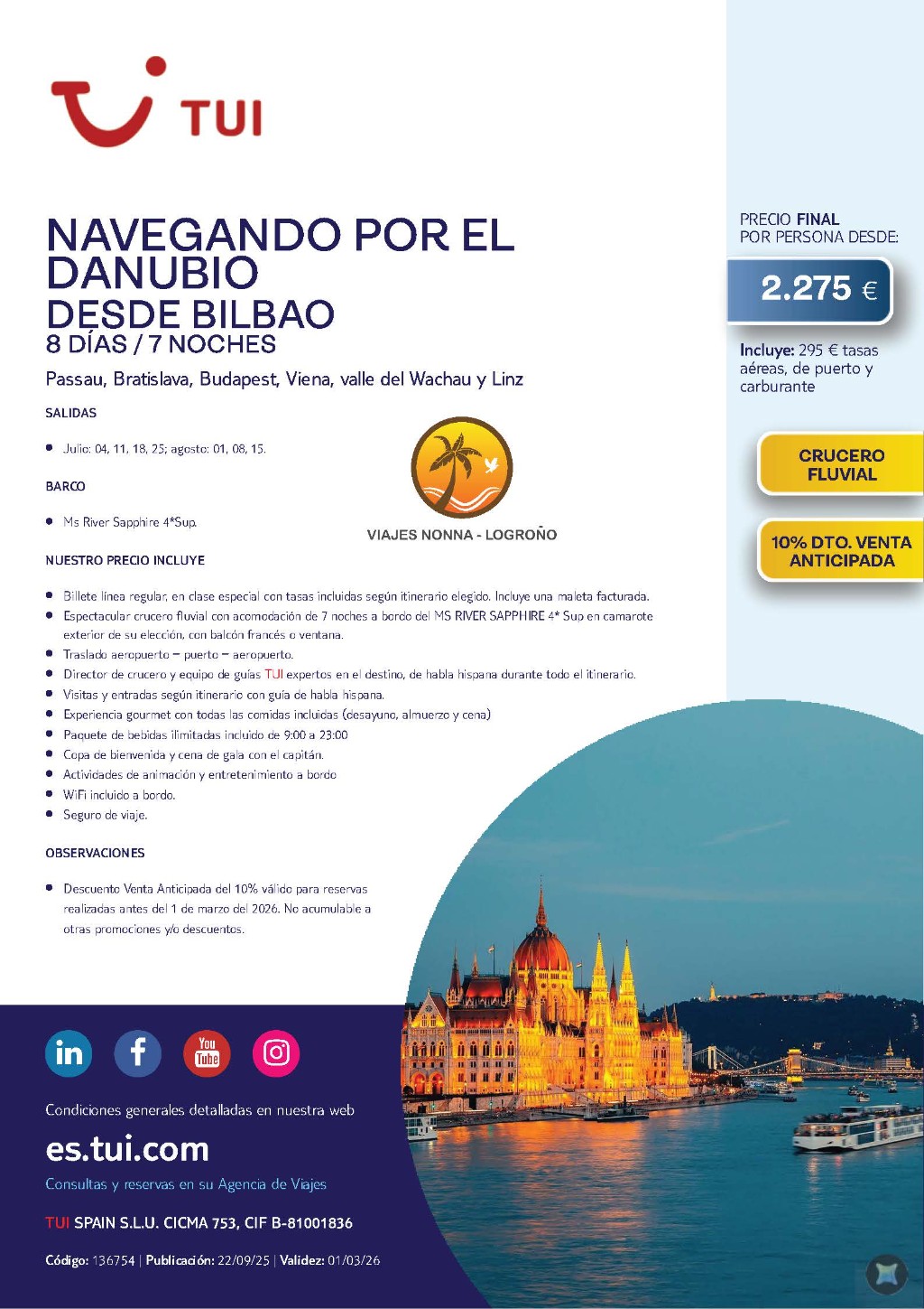 Oferta Crucero Fluvial Danubio
