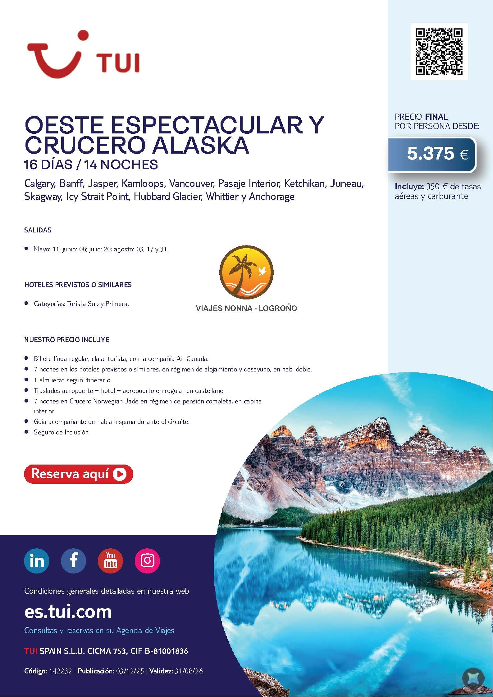 Oferta Oeste Canada y Crucero Alaska