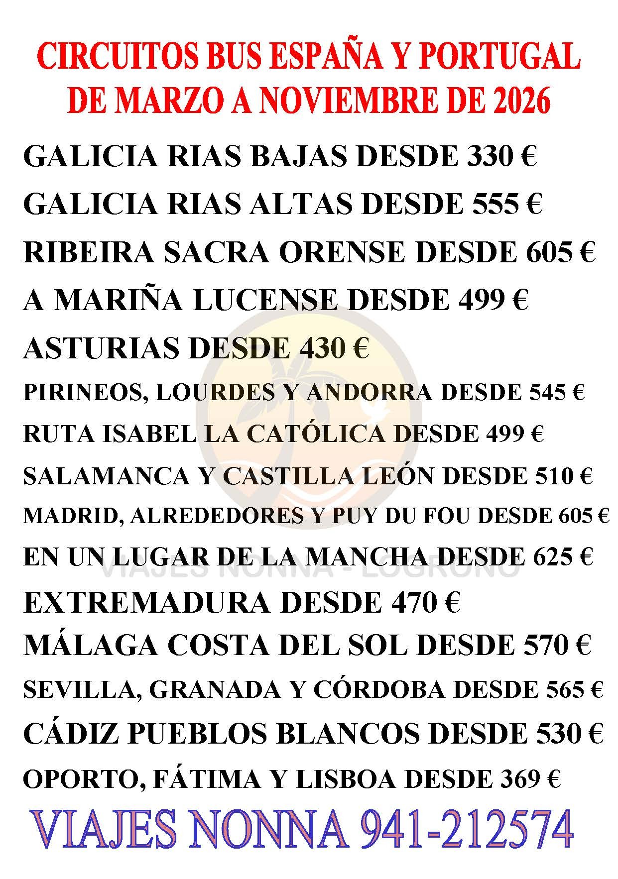 Oferta Circuitos España y Portugal bus desde Logroño 2026